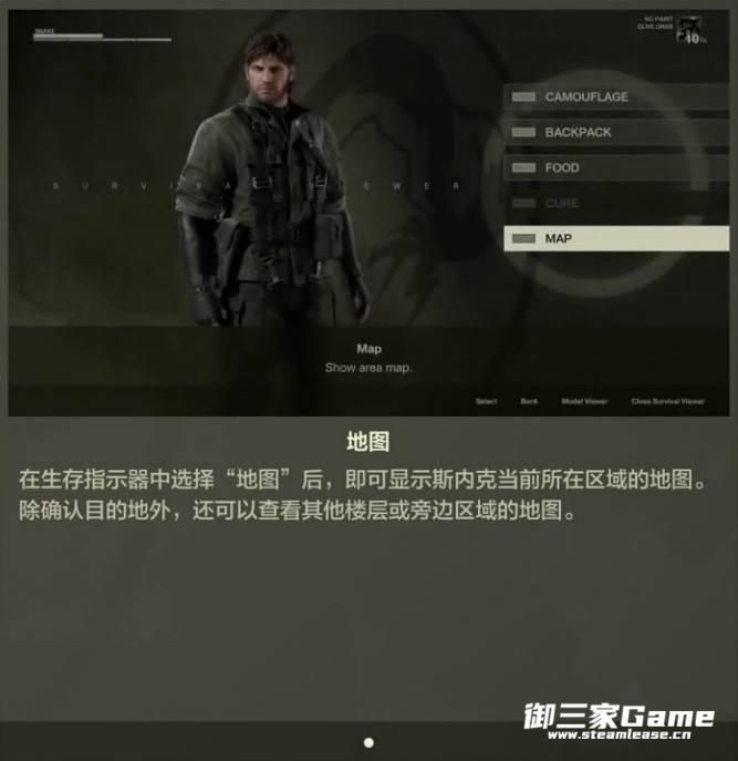 在生存指示器中选择“地图”后,即可显示斯内克当前所在区域的地图。