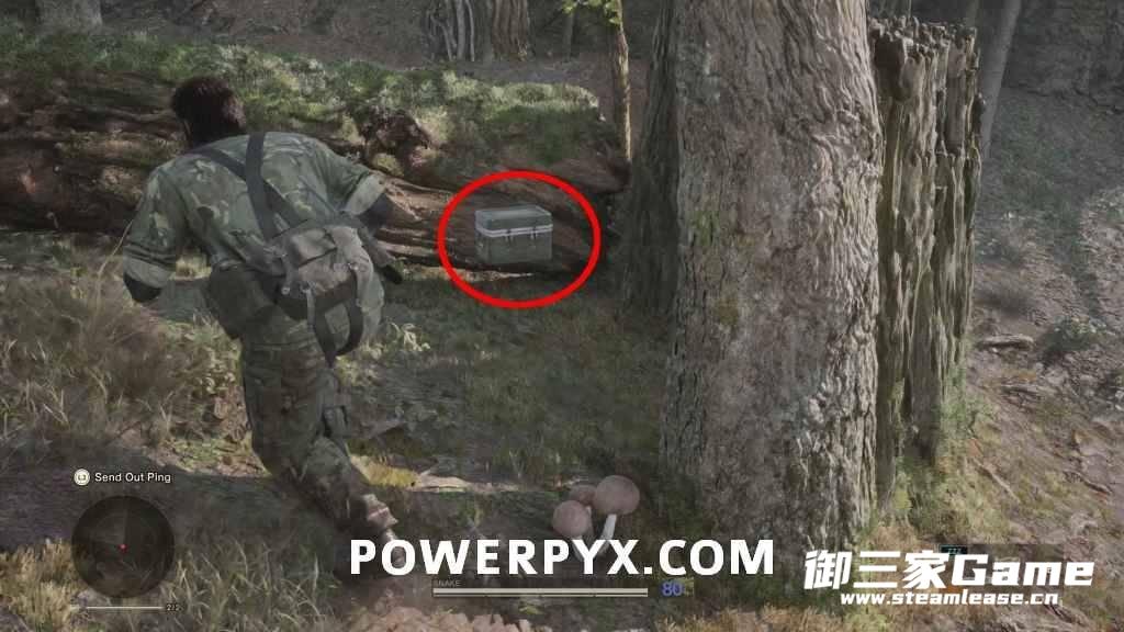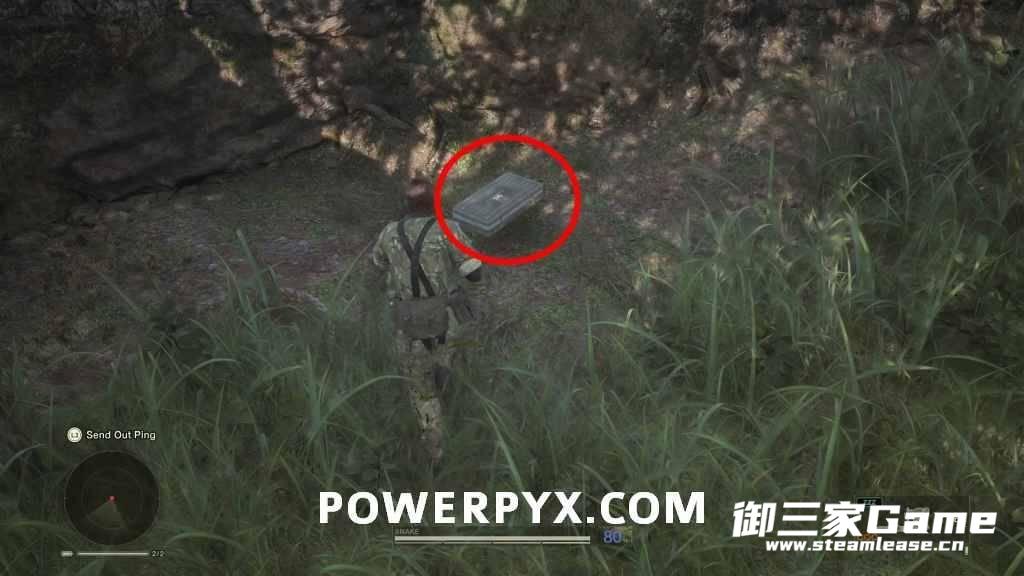 从手榴弹所在位置往右穿过草丛,沿着边缘岩壁走到大树桩后方即可看到。