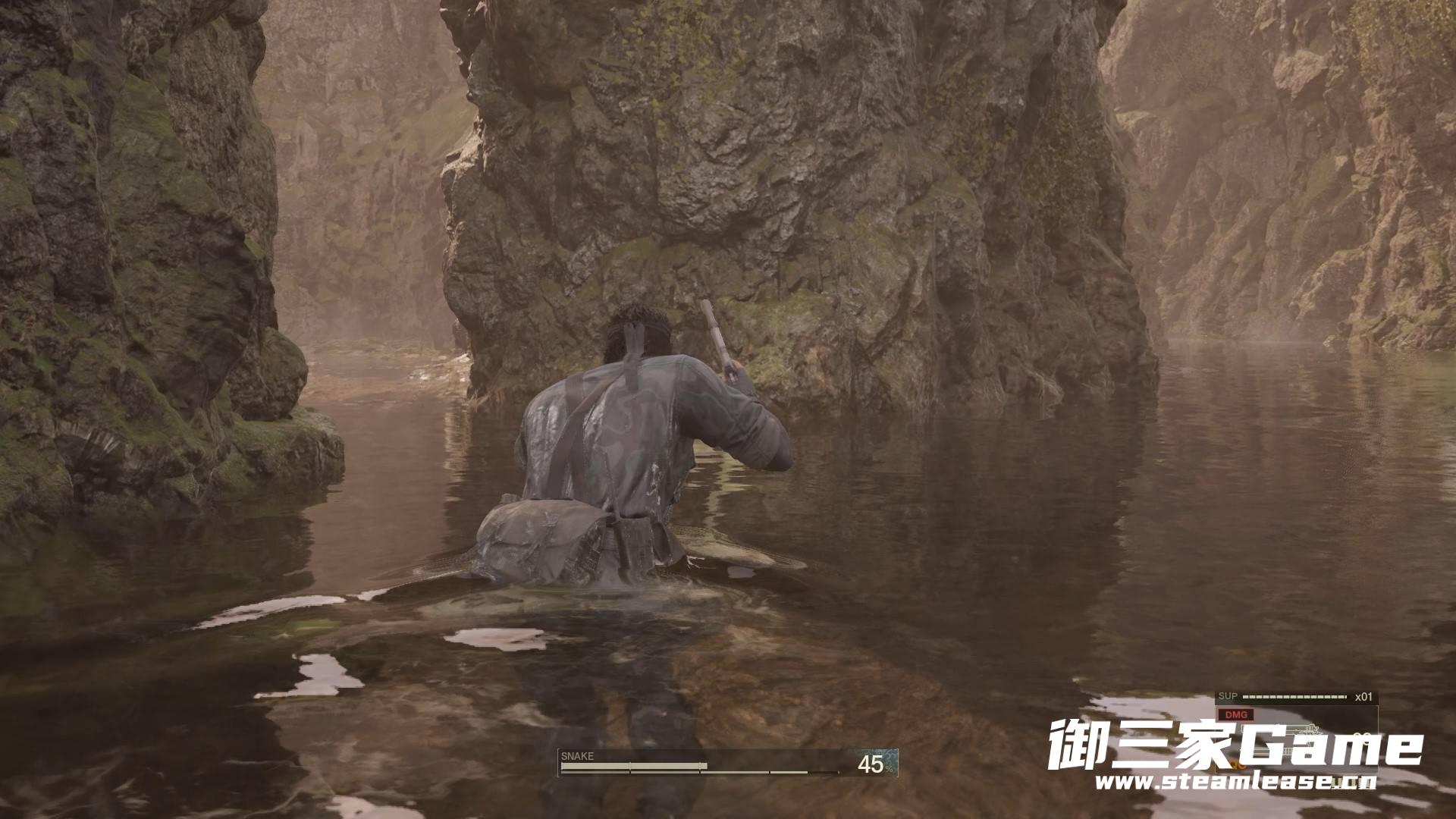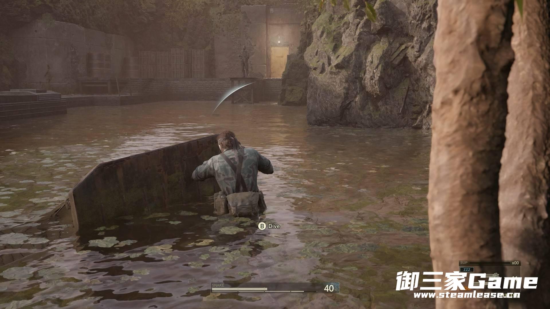 击败【痛苦】并离开洞穴后,来到【波尼索维埃南部】(需要穿过很长的河流),保证体力充沛后潜入水中快速往前游,避开守卫的探照灯。