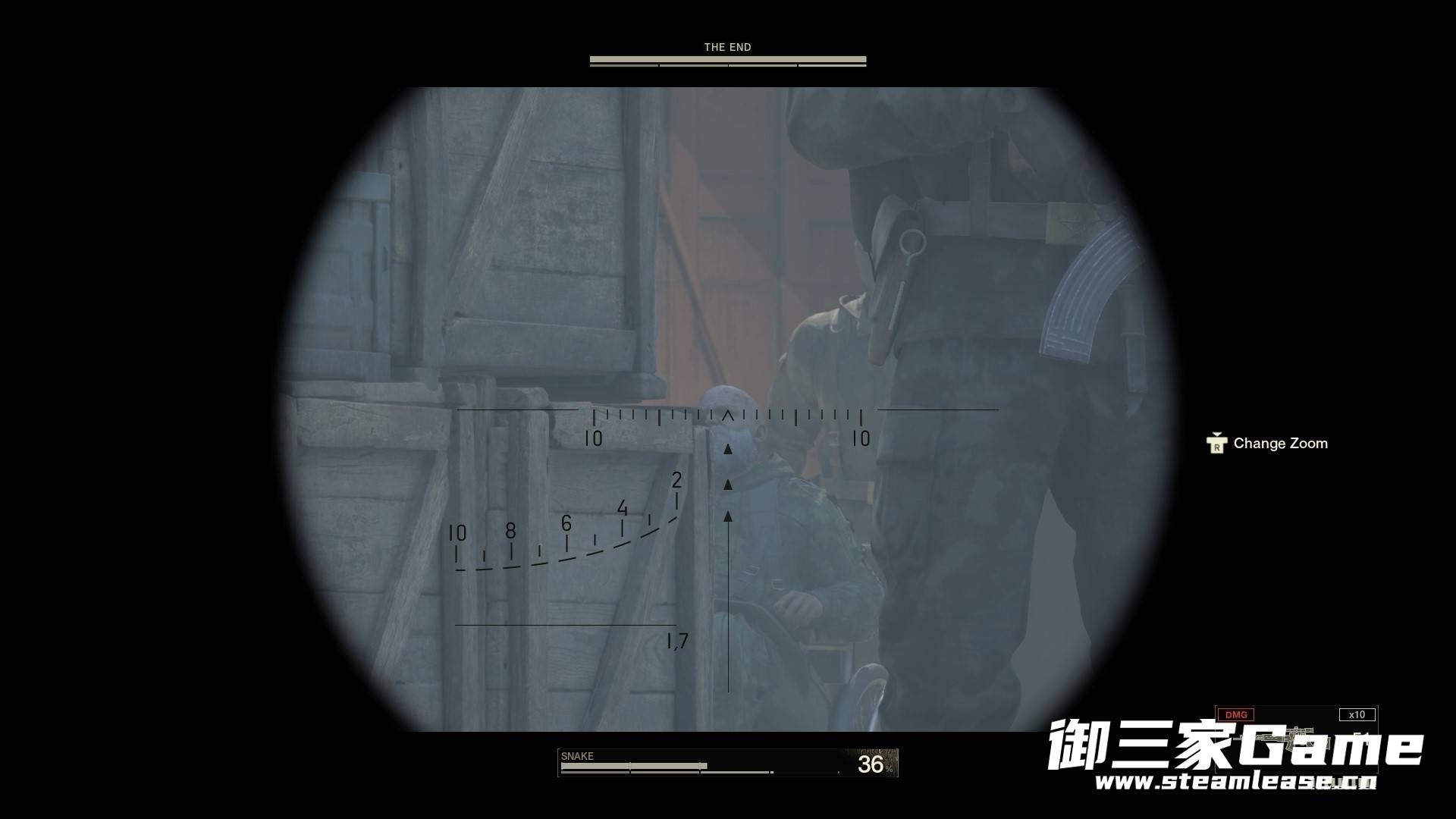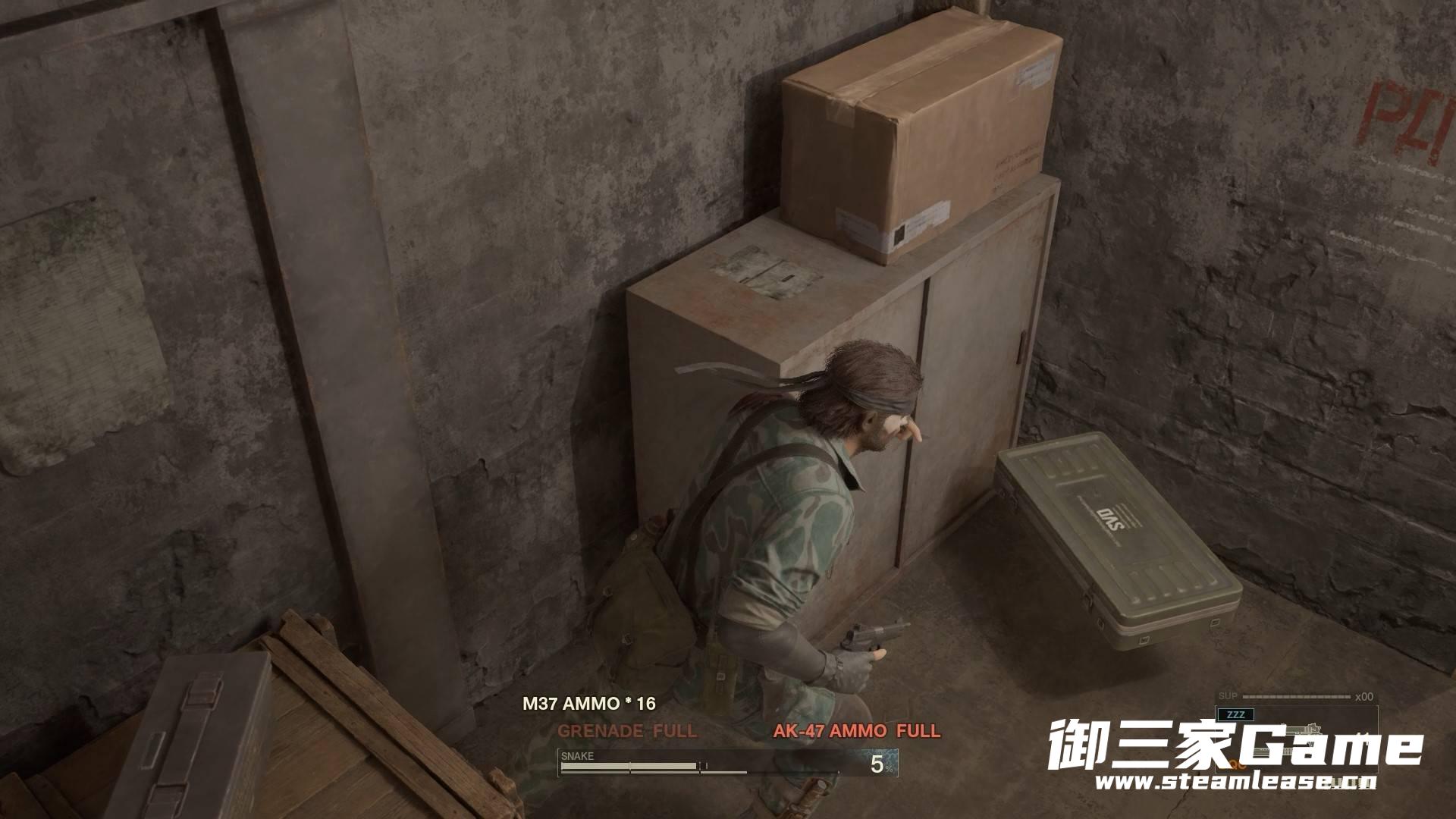 此处有许多收集道具,但重点是在右侧建筑内拿到狙击步枪,由一名携带8mm胶片的士兵看守,获取胶片难度较高。如果不考虑胶片的话,只需快速将两名守卫击晕或击败,进入建筑拿到狙击步枪以及其他武器道具。