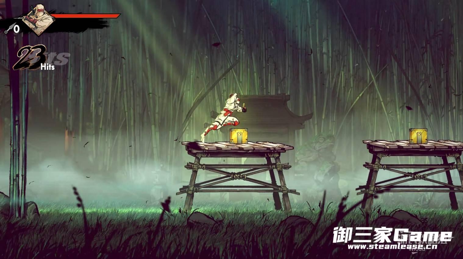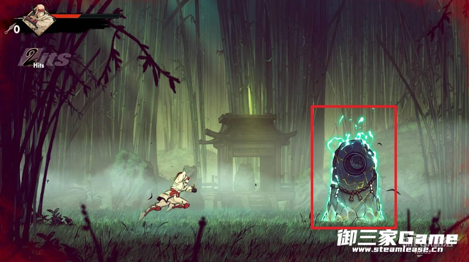 继续移动,两个高台上各有一个黄色箱子,攻击箱子可获得一定的补给,可回复手里剑与一定的血量。