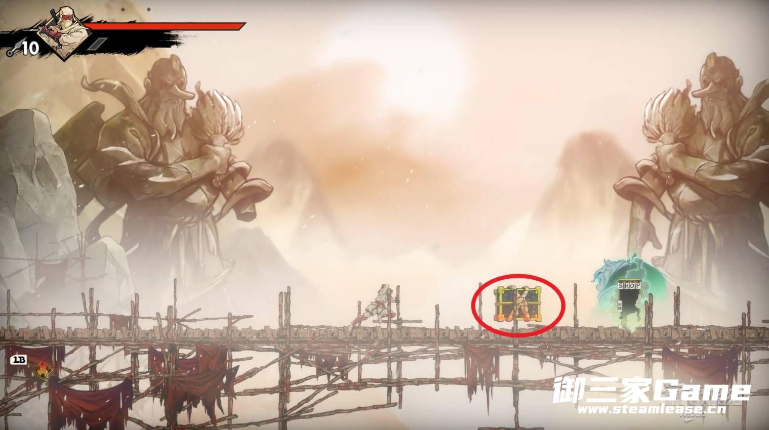 起始点往右走,商人旁边也有个宝箱,开启可获得【豪杰】护符。