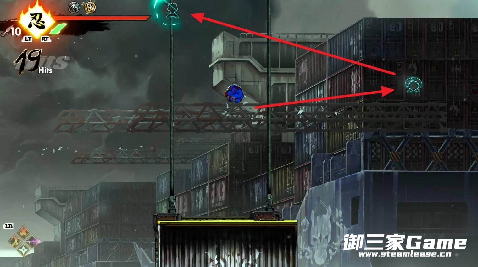 不要着急探索建筑,回到集装箱跳过来的位置,先连跳到中间的集装箱,因为集装箱的运动是从左上到右下,会形成一个高低差。