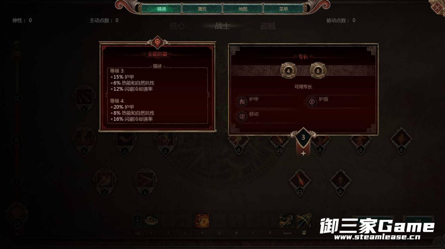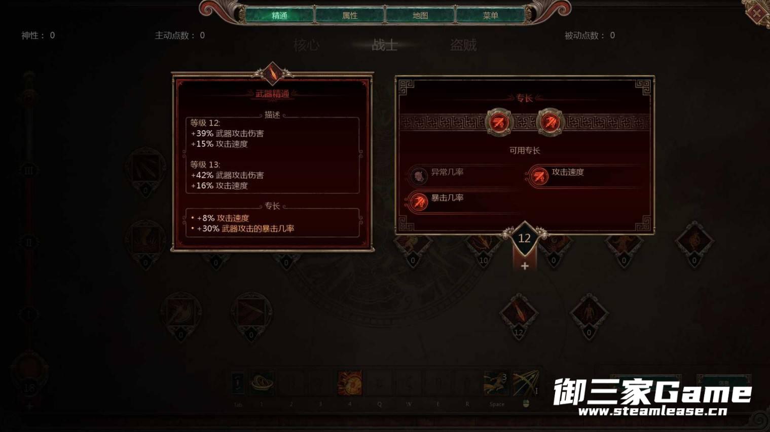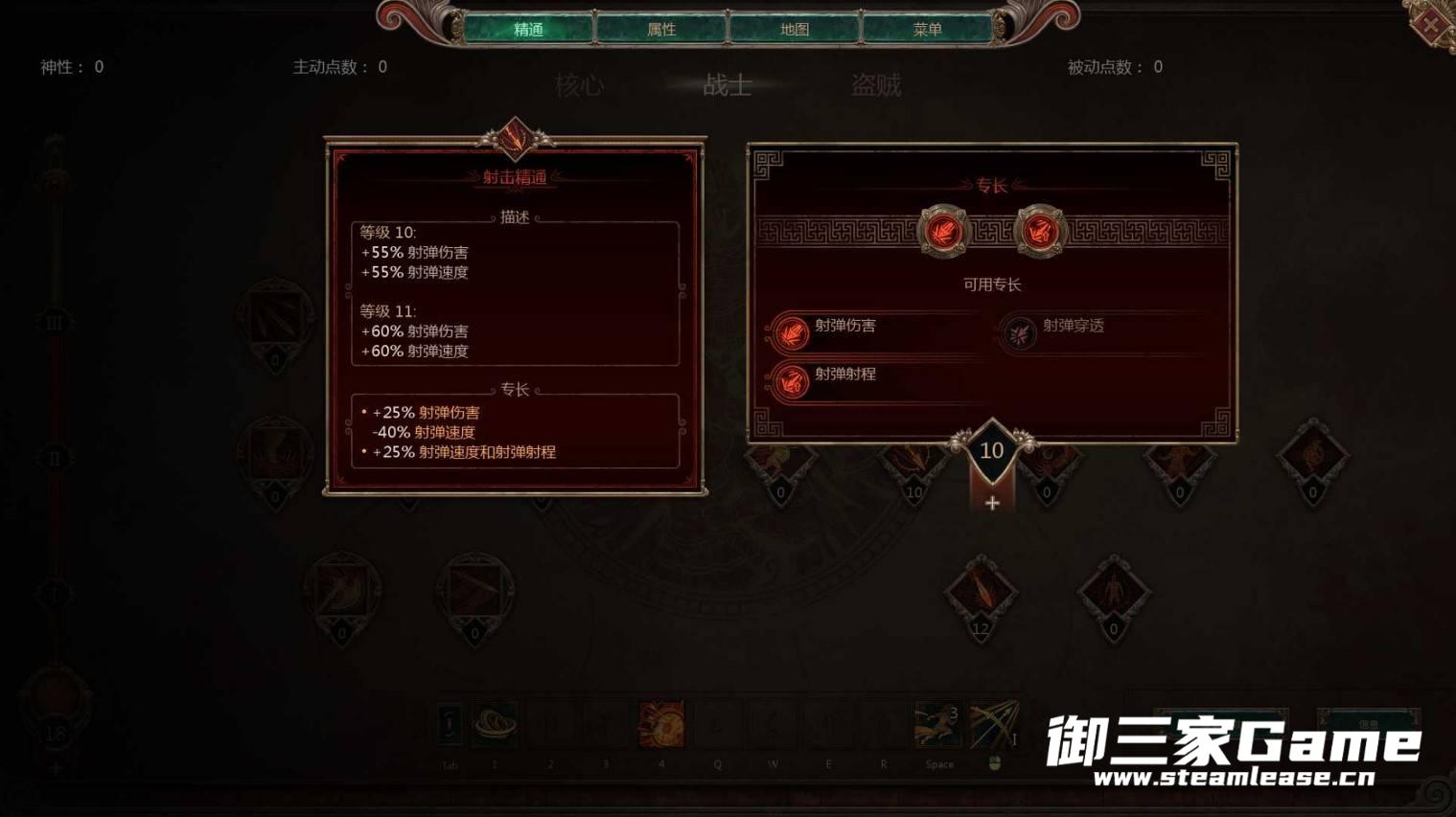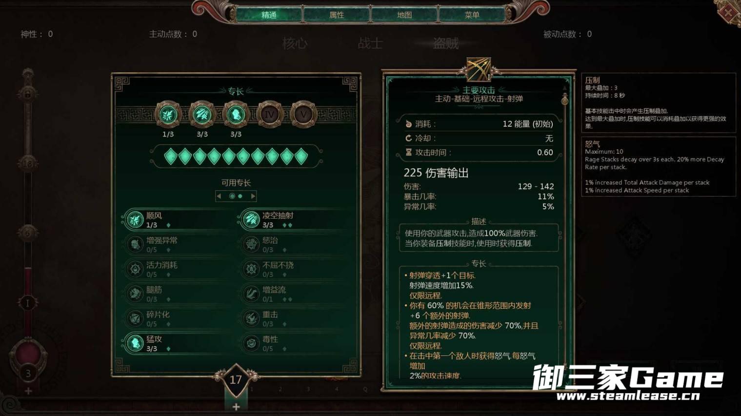 按图示,前期就顺风2点,有点就点左键,优先满凌空抽射,保持1点的顺风,配合猛击攻速嘎嘎快,然后点战士的两个被动,武器精通(攻速+暴击)和射击精通(射弹伤害+射程),战士条点到18点后出光环旗帜(活力1点吸血+光环抗性),然后见怪左键即可