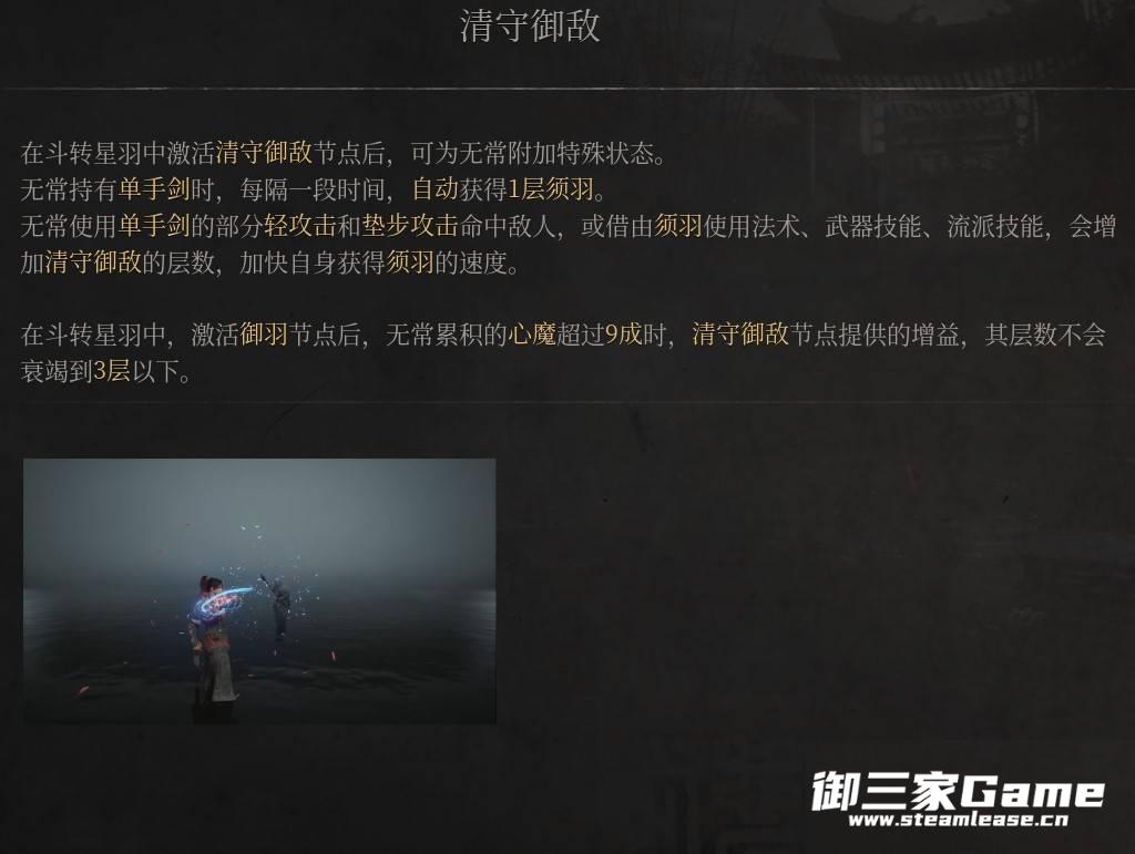 无常使用单手剑的部分轻攻击和垫步攻击命中敌人,或借由须羽使用法术、武器技能、流派技能,会增加清守御敌的层数,加快自身获得须羽的速度。