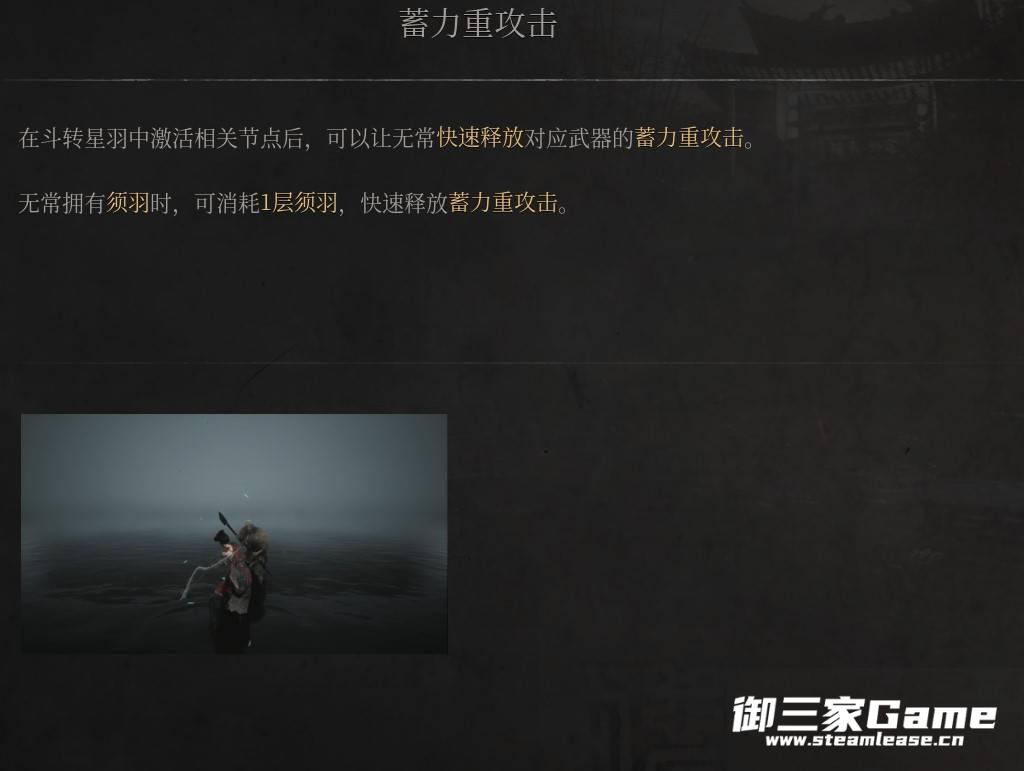 在斗转星羽中激活相关节点后,可以让无常快速释放对应武器的蓄力重攻击