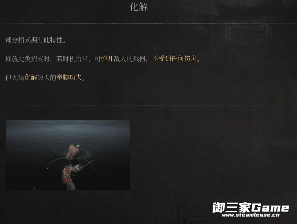 释放此类招式时,若时机恰当,可弹开敌人的兵器,不受到任何伤害。
